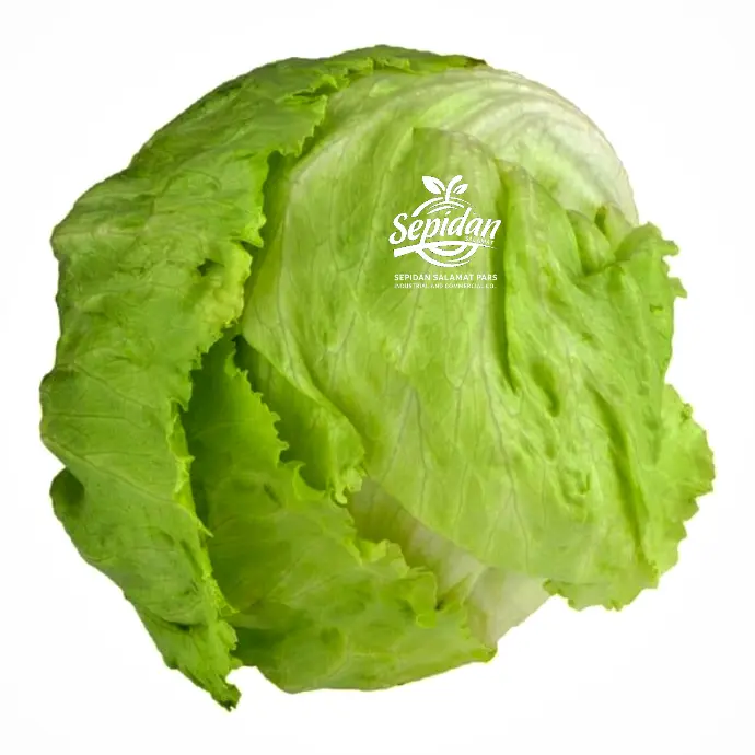 کاهو سالادی گرد و ترد با برگهای آبدار، سفید-سبز روشن و ظاهر درخشان و جذاب.